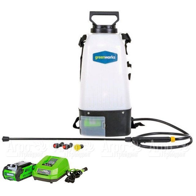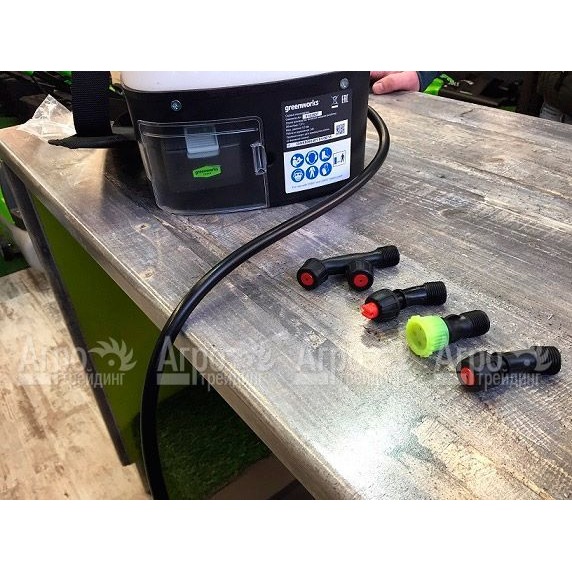 На фотографии Аккумуляторный опрыскиватель GreenWorks GSP1250K2: