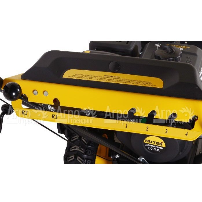 Снегоуборщик Huter SGC 4000 имеет колеса с самоочищающимся протектором шин, что способствует легкому передвижению без пробуксовки по заснеженной и обледенелой поверхности. Шестиступенчатая трансмиссия обеспечивает маневренность агрегата и позволяет пользователю выбрать необходимый режим скорости в зависимости от сложности выполняемой работы. Дефлектор имеет возможность для изменения направления отброса снега в необходимое место.