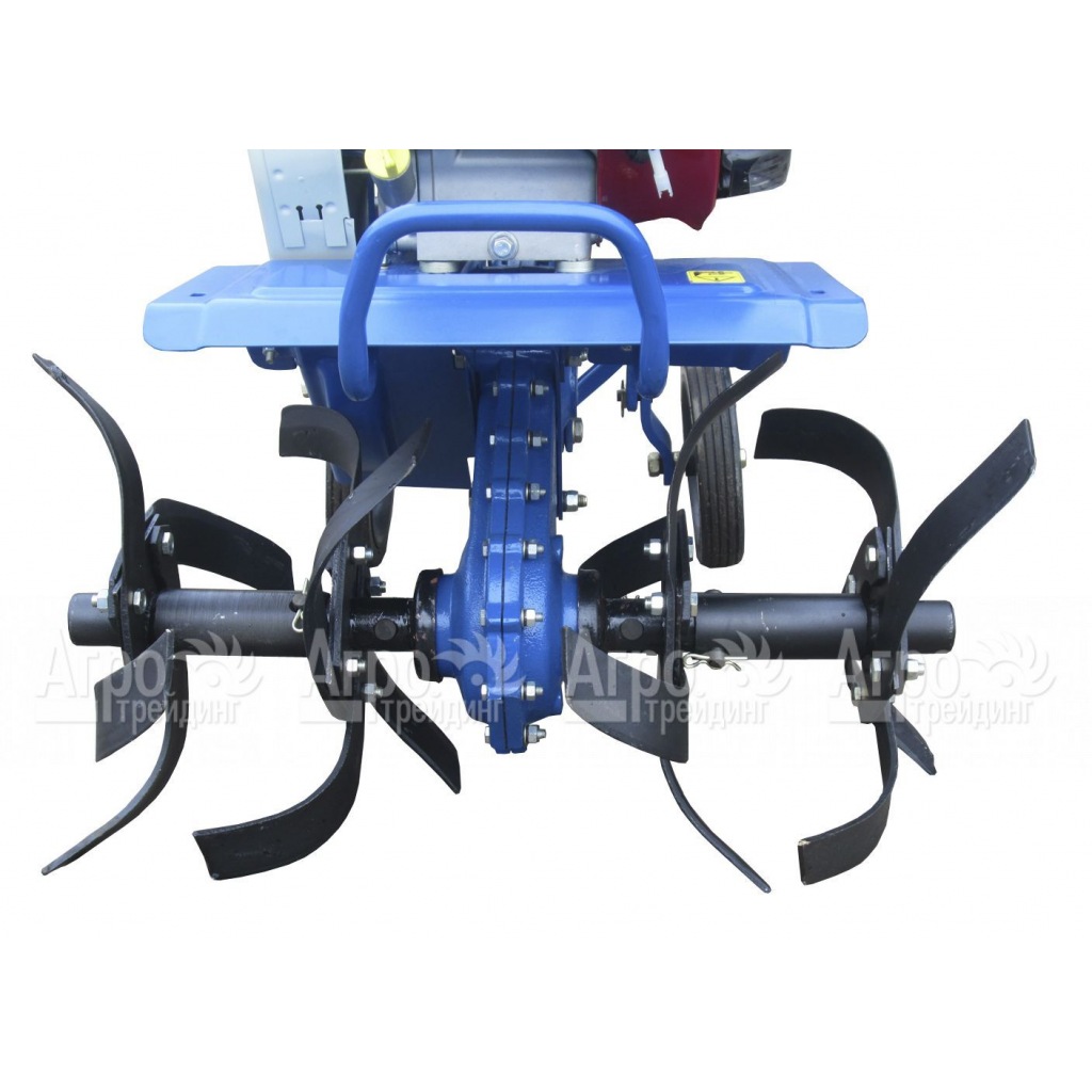 За один проход может обрабатывать полосу грунта шириной от 35 -60 см, в зависимости от количества секций установленных на культиваторе Крот МК-4-03, с заглублением на 25 см. Реверсная скорость обеспечивает технике маневренность и выезд при зарывании в грунте. Рукоятки можно отрегулировать по высоте для удобства работы пользователя. Защитная пластина поверх фрезы ограничивает разброс комьев земли. Помимо фрез на культиваторе можно применять другое навесное оборудование - окучник, плуг, с помощью специальной сцепки. Для повышения тяги вместо обычных колес ставят металлические колеса с шипами - грунтозацепы.