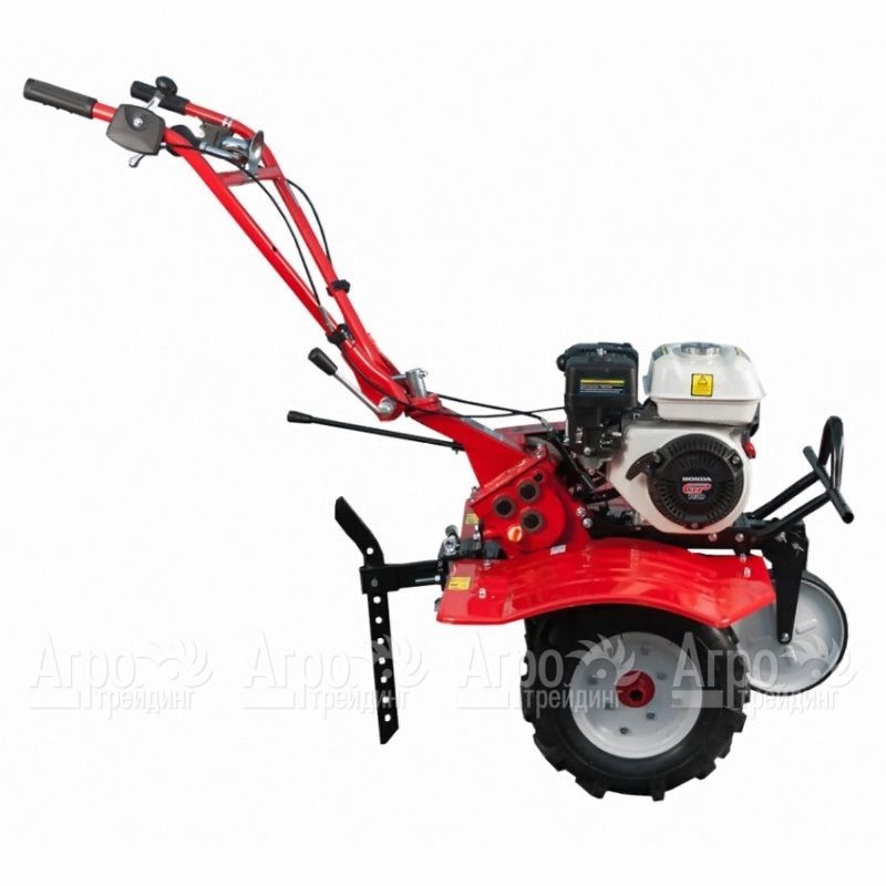 Характеристики товара: Мотоблок DDE V 700 II - H160W Буцефал-2MHПодробное описание товараМногофункциональная техника малой механизации -мотоблок DDE V 700 II - H160W Буцефал-2MH способна облегчить труд и обеспечить выполнение целого ряда полевых работ на приусадебном или фермерском хозяйстве. В качестве силового агрегата используется долговечный четырехтактный двигатель Honda GP160 мощностью 5,5 л.с. с механической системой запуска, двигатель справляется с обработкой чернозема, суглинков и глинистых почв. В коробке передач имеется две передние и реверсная скорости, что обеспечивает выполнение операций в оптимальном режиме и маневров на участке с ограниченным пространством. Колеса большого диаметра с сельскохозяйственным протектором способствуют высокой проходимости по рыхлому грунту. Регулируемая по высоте рукоятка, оснащенные противоскользящими накладками ручки, удобно расположенные элементы управления на рукоятке повышают комфортность работы с мотоблоком DDE V 700 II - H160W Буцефал-2MH. Уровень надежности техники повышается благодаря цепному редуктору, чугунной КПП. В мотоблоке предусмотрено имеет устройство для подачи предупреждающего звукового сигнала -клаксон.