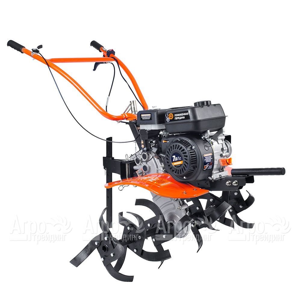 Характеристики товара: Мотоблок Patriot Калуга (без колес), фрезы в комплектеПодробное описание товараМотоблок Patriot Калуга (без колес) предназначен для использования в личном хозяйстве. С его помощью организуют подготовку почвы к посадке культурных растений. С помощью стальных фрез землю рыхлят, подрезая корни сорняков. Наличие сцепного узла позволяет использовать для работы дополнительное навесное оборудование, что значительно увеличивает возможности агрегата. В основе мотоблока лежит мощный двигатель внутреннего сгорания. Мотор всегда легко запускается ручным стартером за минимальное число рывков. Расход топлива небольшой. Ременная передача обеспечивает повышенный моторесурс техники. Несколько скоростей движения вперёд позволяют организовать работу машины с наибольшей эффективностью и комфортом для оператора. Наличие реверса повышает манёвренность техники и даёт возможность обрабатывать землю в условиях ограниченного пространства. К плюсам мотоблока Patriot Калуга относят удобное расположение органов управления, складную ручку, сошник для регулирования глубины рыхления, щитки над фрезами, исключающими попадания комьев земли в оператора.