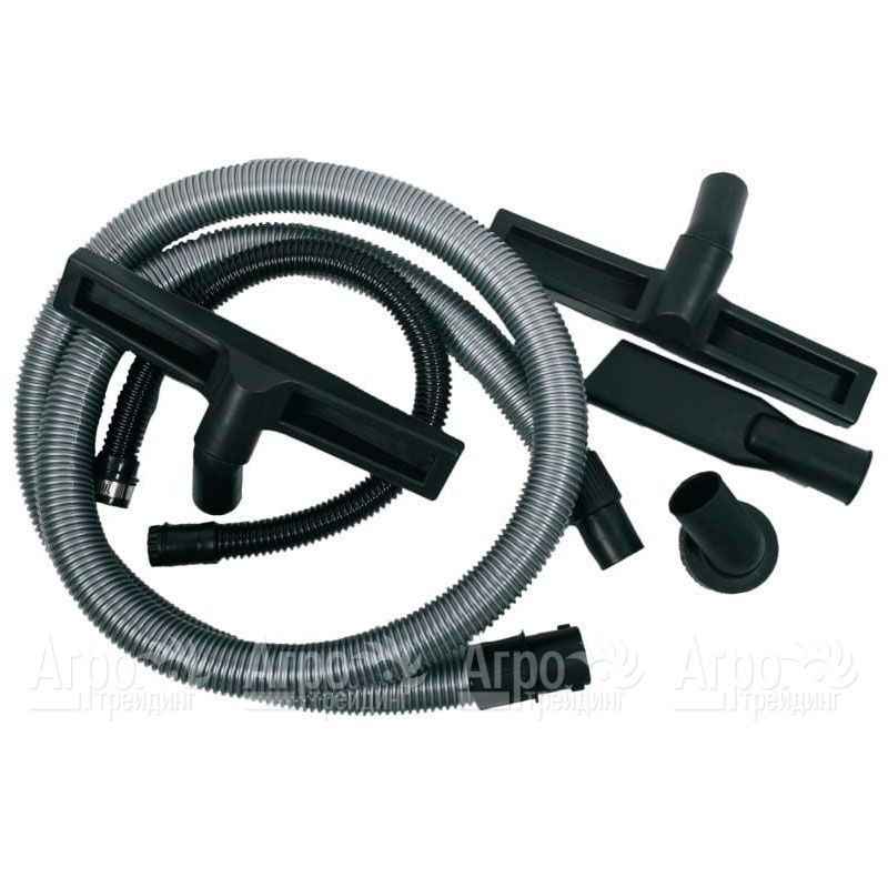 Базовая комплектация: патрубок, прямоугольная щетка, щелевая насадка, тканевый пылесборный мешок, фильтр-губка