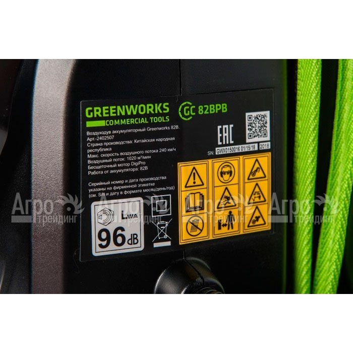 На фотографии Воздуходувка аккумуляторная GreenWorks GC82BPBK5 82V:
