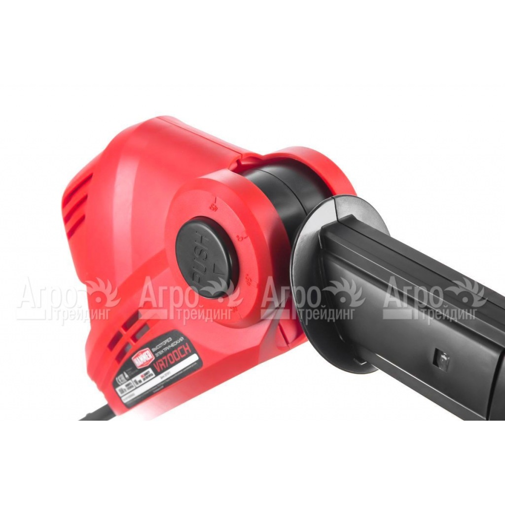 Высоторез электрический Хаммер VR700CH надёжно защищён от перегрузки и короткого замыкания. Для удобства работы допускается изменять угол наклона режущей насадки. Работать кусторезом необходимо двумя руками. Особое внимание обращайте на наличие масла в масляном бачке, предназначенное для смазки режущей части агрегата. Использование кнопки блокировки случайного пуска повысит безопасность эксплуатации инструмента.
